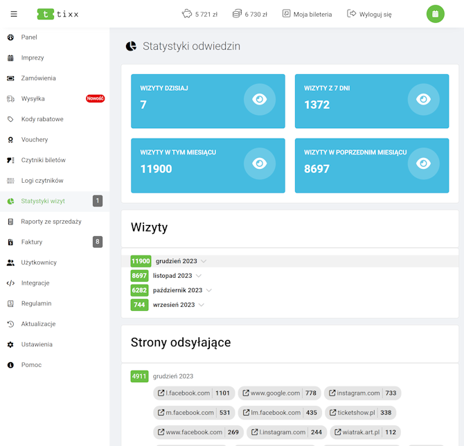 Przy wejściu do bileterii, system Tixx.pl sprawdza skąd pochodzi każde wejście. Jeżeli w danym momencie o Twojej imprezie piszą patroni medialni, którzy linkują do Twojej bileterii - sprawdzisz ile osób faktycznie udało im się zainteresować.