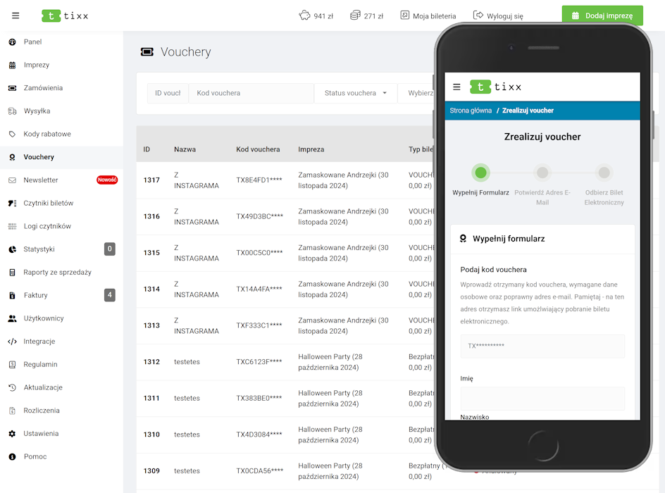 Praktyczna funkcja voucherów pozwala na proste przekazywanie bezpłatnych biletów dla klientów oraz partnerów.