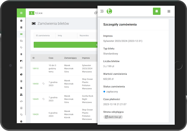 Większość pracy przy obsłudze zamówień, system Tixx.pl wykona za Ciebie automatycznie: przyjmie zamówienie, zaksięguje płatność, wygeneruje bilet elektroniczny i wyśle powiadomienia mailowe.